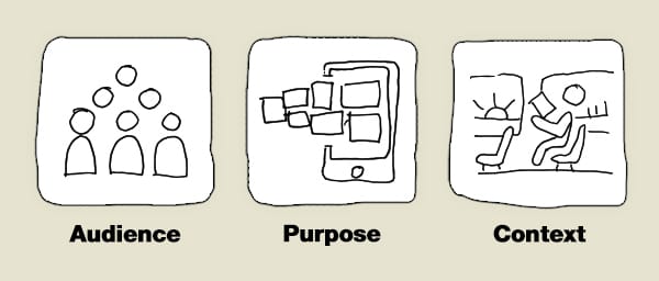 Context: How and where is the content being delivered?On a desktop computer at work? On a smartphone on the bus? On an iPad at home? A combination? How the user consumes the content and through different technologies should impact how it is delivered.