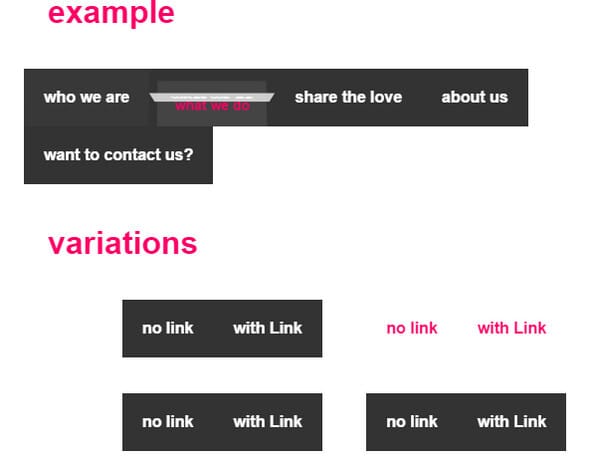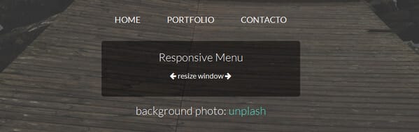 You won’t find anything special in design or interactivity in this menu: it is just a super simple text-based yet subtle navigation that looks great on photo backdrops and dark backgrounds. However, there is one thing that makes it a highly desirable, and it is its ability to quickly adapt to changing browser window sizes.