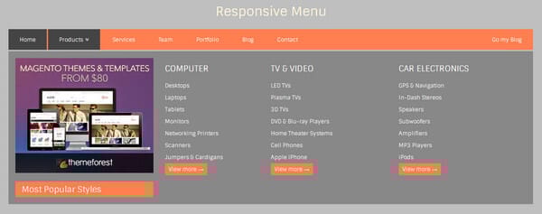 Every content-intensive project implies a reliable solution for neatly and effectively demonstrating the data structure to online audience, so it is pretty obvious that without an all-embracing yet compact drop-down menu you simply can’t survive. This menu was created exactly for such purposes. Not only will it skillfully cover and neatly display all categories, extra links and even images or ad blocks but also correctly and quickly react on changes in screen sizes.