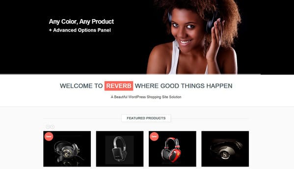 ReVerb is a sleek fully responsive WooCommerce theme with unlimited colors and sidebars. It includes more than 500 fonts, pack of essential shortcodes, google map widget, 2 blog styles, and powerful settings panel.