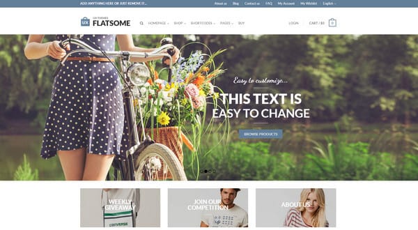 Flatsome is a mobile-friendly WooCommerce theme with pleasant animations, stable structure, light coloring and lots of essential widgets. The designer quite skillfully leverages the flat style, giving the template an elegant appearance.