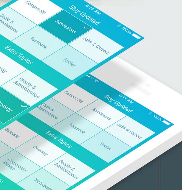 Since the app was created with an iOS7 style in mind, it includes lots of neat outline icons, elegant graphics, bright simple colors and refined eye-catching typography. The designer also resorts to grid-style layouts in order to pleasantly dish up all the multimedia content.